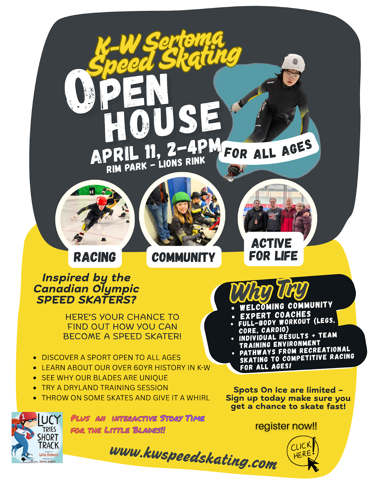 “Skating is the most wonderful feeling in the world. The feel of the ice and the power of the glide is amazing. Sharing that feeling and the comraderies of the speed skating family across all of Canada and beyond is something that brings me great joy.”